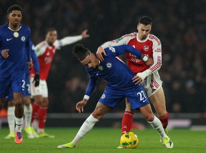 进攻端没有形成什么有效威胁,罗塞尼尔下半场回来后不久便立马换上了埃斯特旺和帕尔默;第63分钟,恩佐角球吊入禁区,库库雷利亚调整凌空抽射还是未能击中门框范围内;第76分钟,阿森纳定位球配合,苏比门迪左侧后点传中,加布里埃尔鱼跃冲顶,库库雷利亚头球解围。