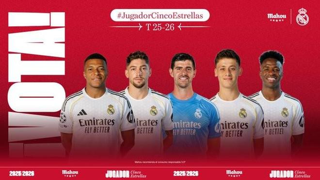 在皇马1月份的队内最佳球员候选名单中,有姆巴佩、巴尔韦德、库尔图瓦、居莱尔和维尼修斯。